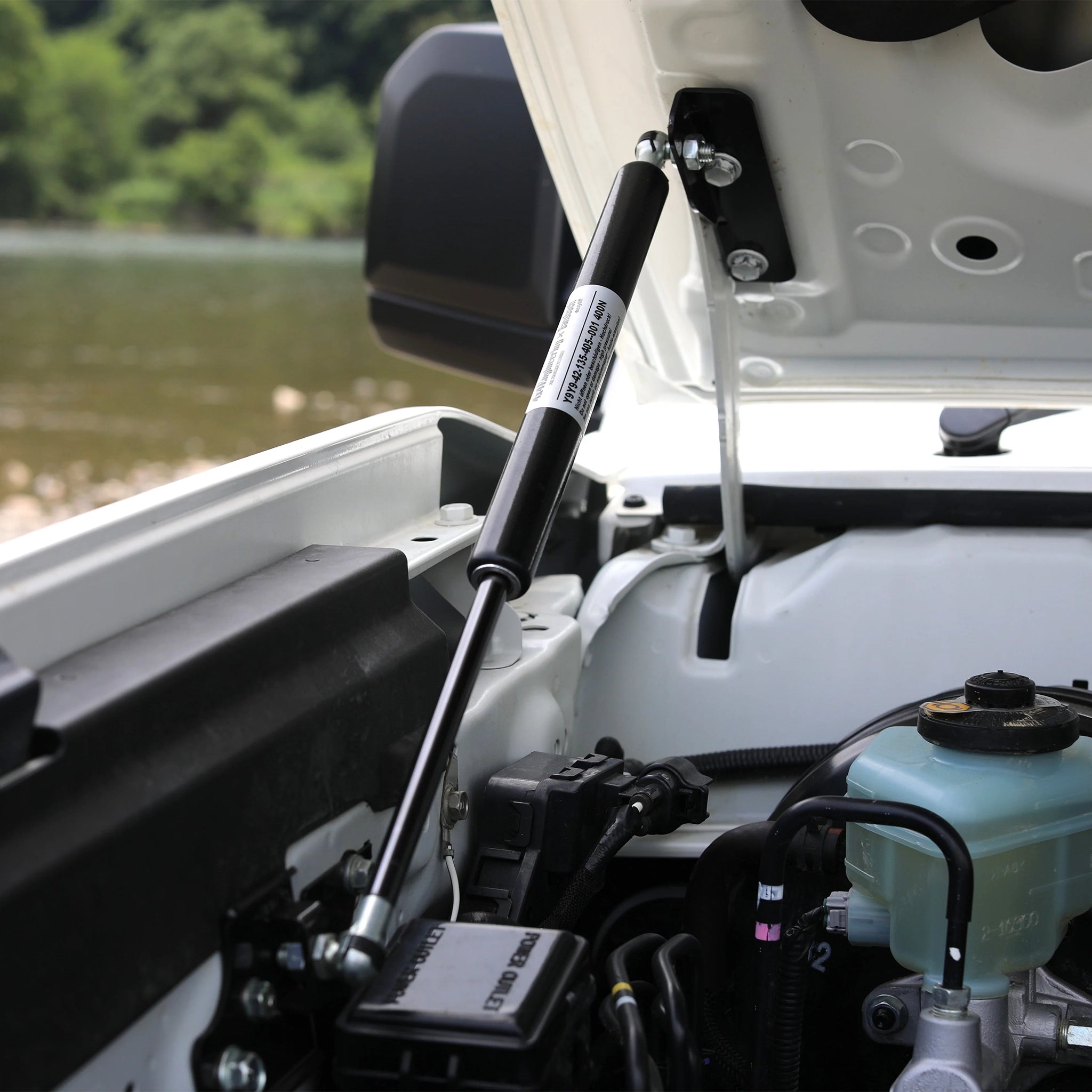 This bonnet strut set makes it easier to open and close the bonnet on your Toyota Land Cruiser 76 (2023+ models). It also allows you to open and hold the bonnet halfway, as well as opening the bonnet further than is possible with the original bonnet stay (as shown in the product images).