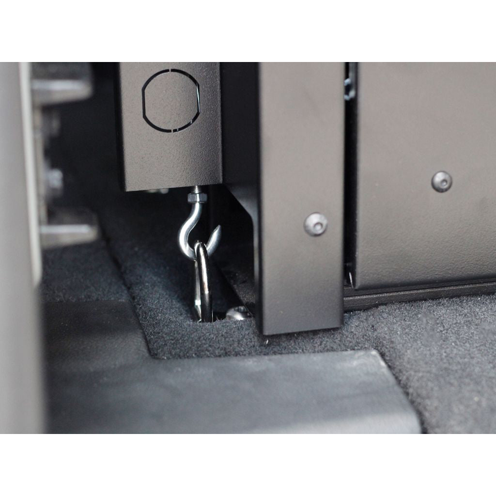 This drawer kit can be easily installed in minutes by attaching the supplied carabiners and turnbuckles to the vehicle’s existing mounting points and the drawer mounting brackets.